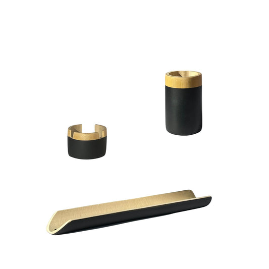 Kit 3 Itens | Black Bambu | Apoio,Copo e Incensario