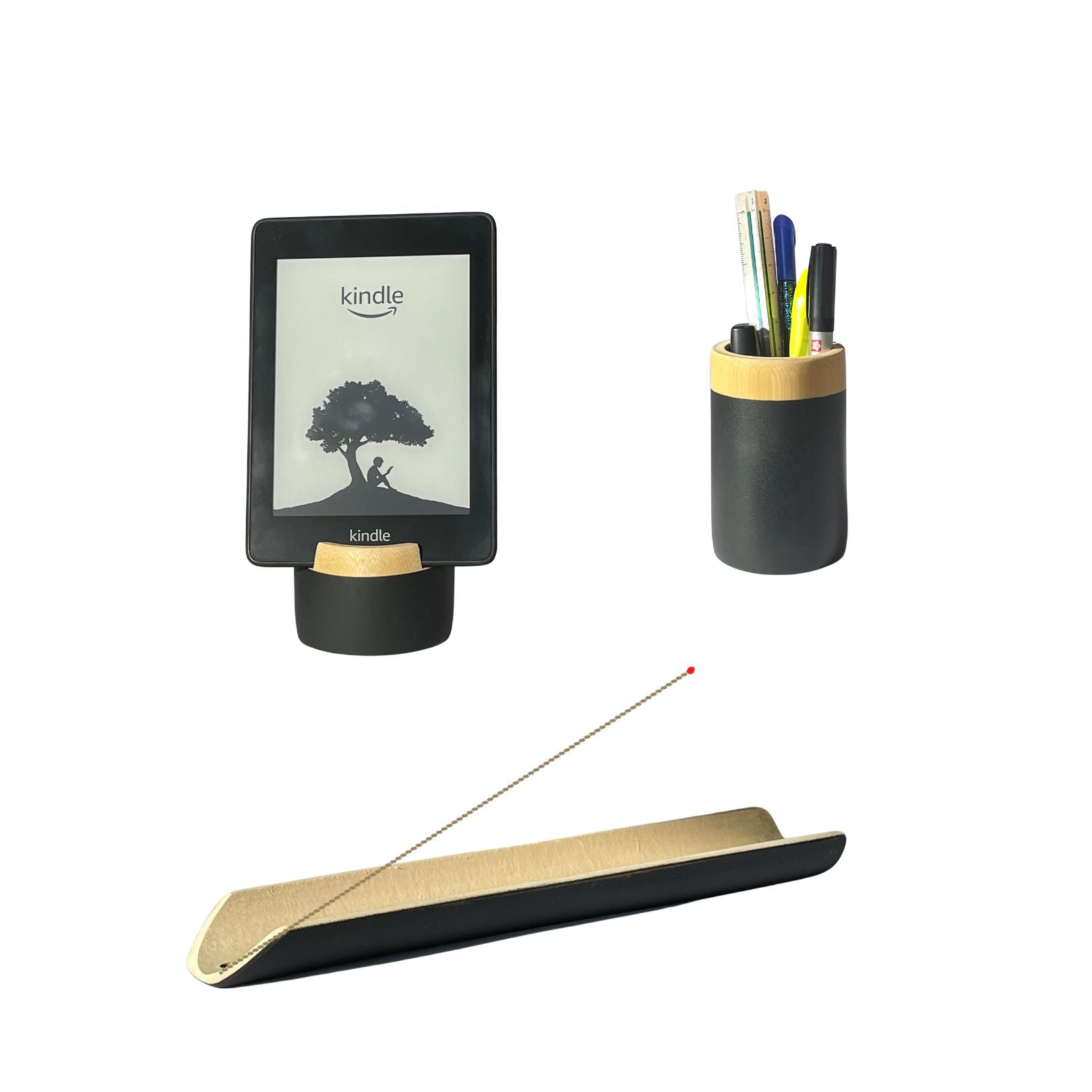 Kit 3 Itens | Black Bambu | Apoio,Copo e Incensario