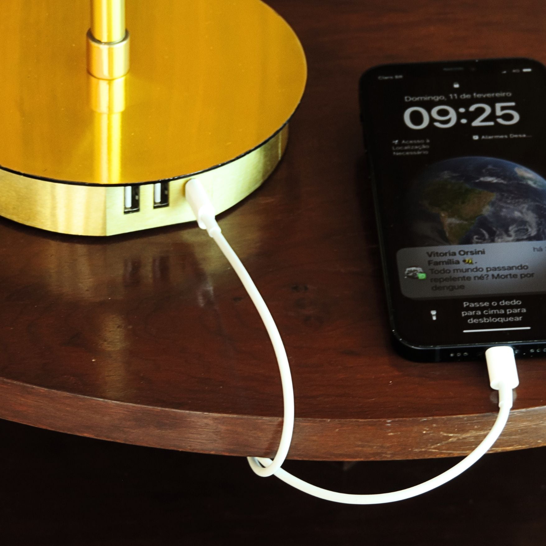 - Módulo de carga rápida - 17W/3.4A: carregamento de múltiplos dispositivos simultaneamente, mesmo com a luminária desligada. Carga equivalente aos mais potentes carregadores do mercado. Compatível com IOS ou Android