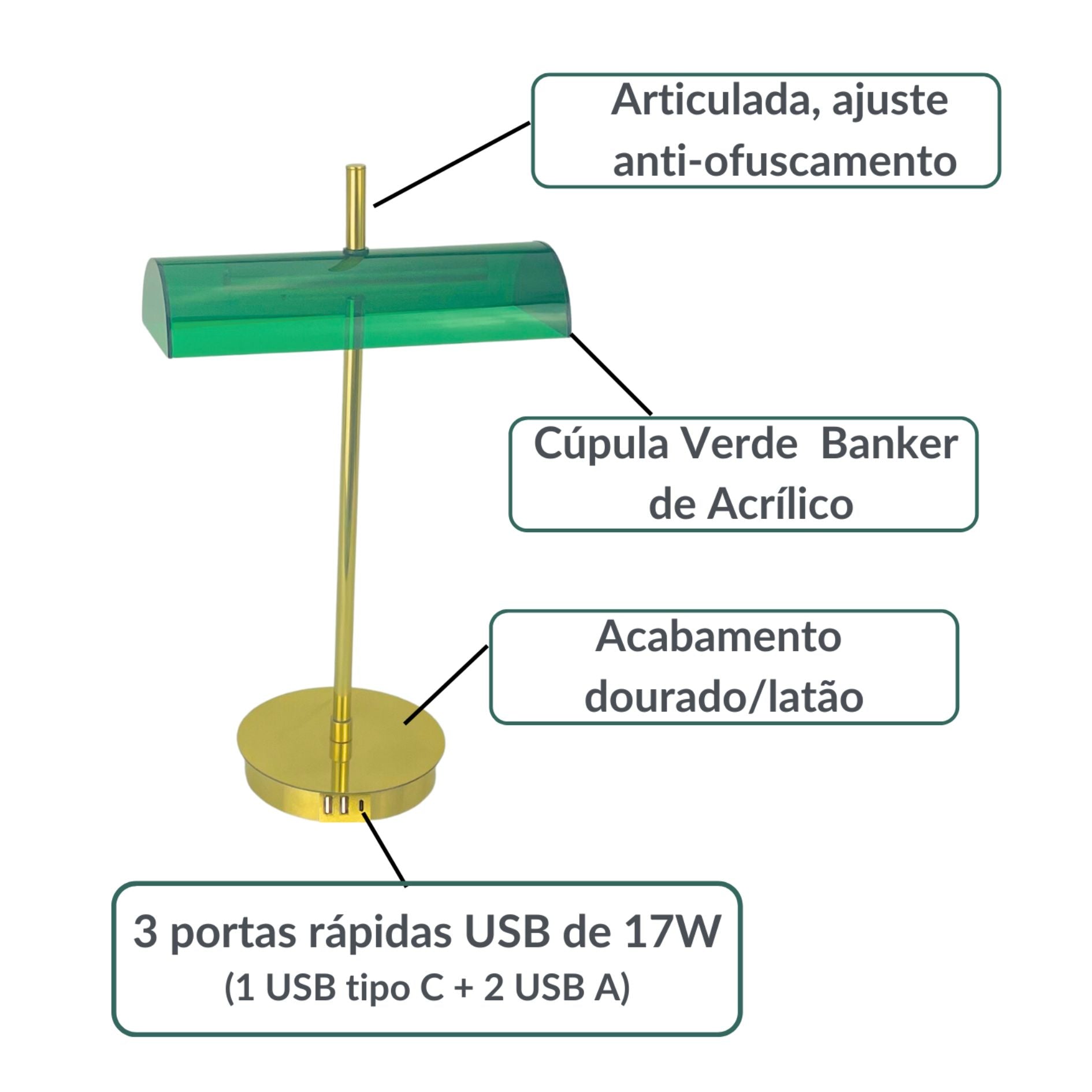 BANKER O.| O clássico repaginado | 3 portas USB | Verde e Dourada